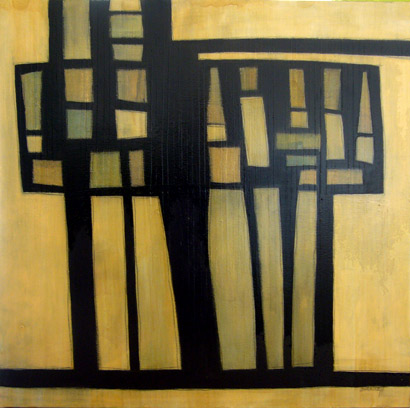 Barrett’s inherent understanding of form allows meditations on division to filter through her painterly textures and cut softly into the subconscious. The paintings speak, like the land of the way they have been slowly divided, cut through, built up or scraped back over time.
