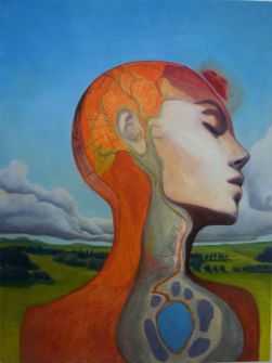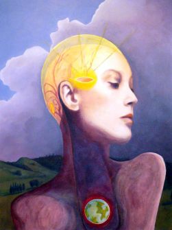 Within his own art, Sattler’s symbolism references the knowledge and art of specific periods in Western history: Adam and Eve; diagrammatic depictions of early dissections; medieval envisioning of the geocentric universe; the tree of life; the skewed perspective of a Renaissance image of a classic temple.
